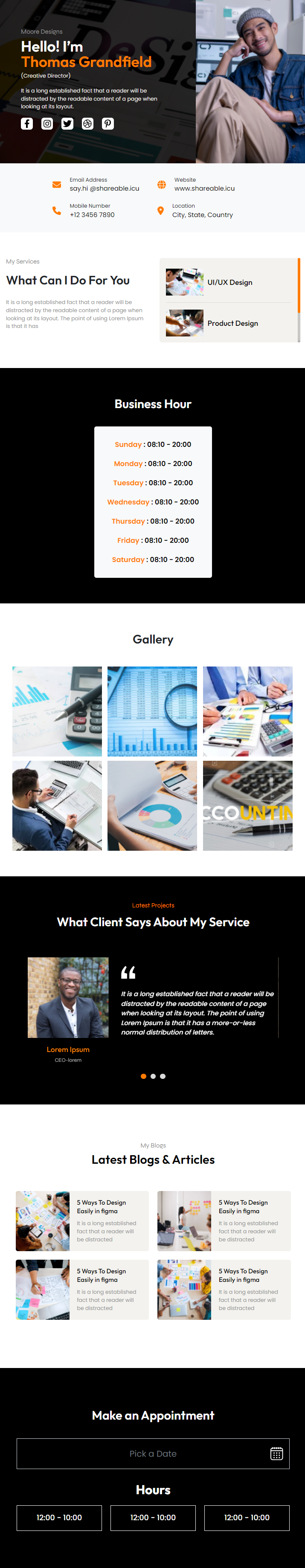 Your client can reach you by just tapping on the phone number and contacting you for any query.